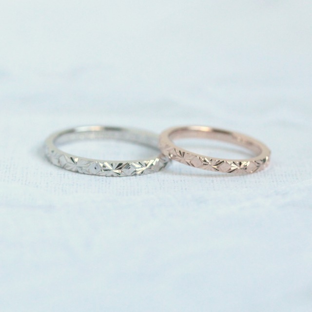 1号サイズのちいさなベビーリングにも、彫り模様を施すことができます。