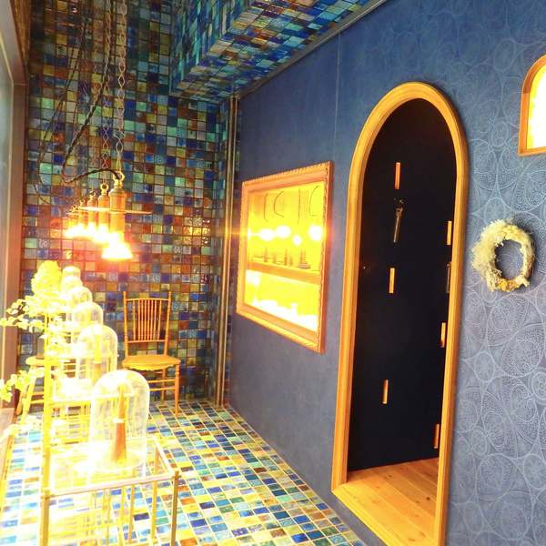 横浜元町ショッピングストリートの路地裏にあるアトリエは、港町らしい紺碧のエントランスが目印です。半個室のセミプライベート感漂うテーブル席で、心ゆくまで指輪をご試着いただけます。みなとみらい線元町・中華街駅5番出口より徒歩約3分、ご予約は空席確認より承ります。