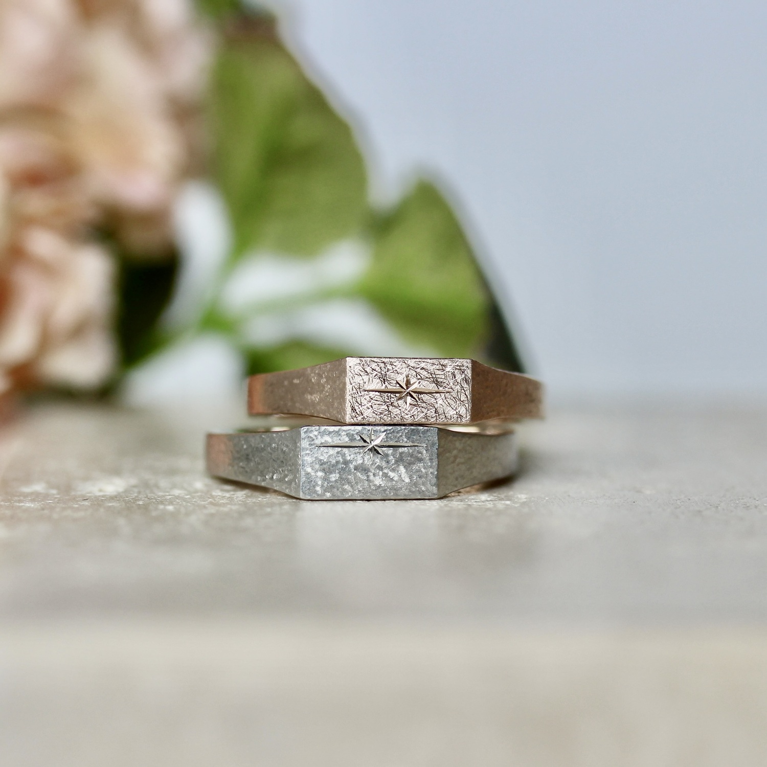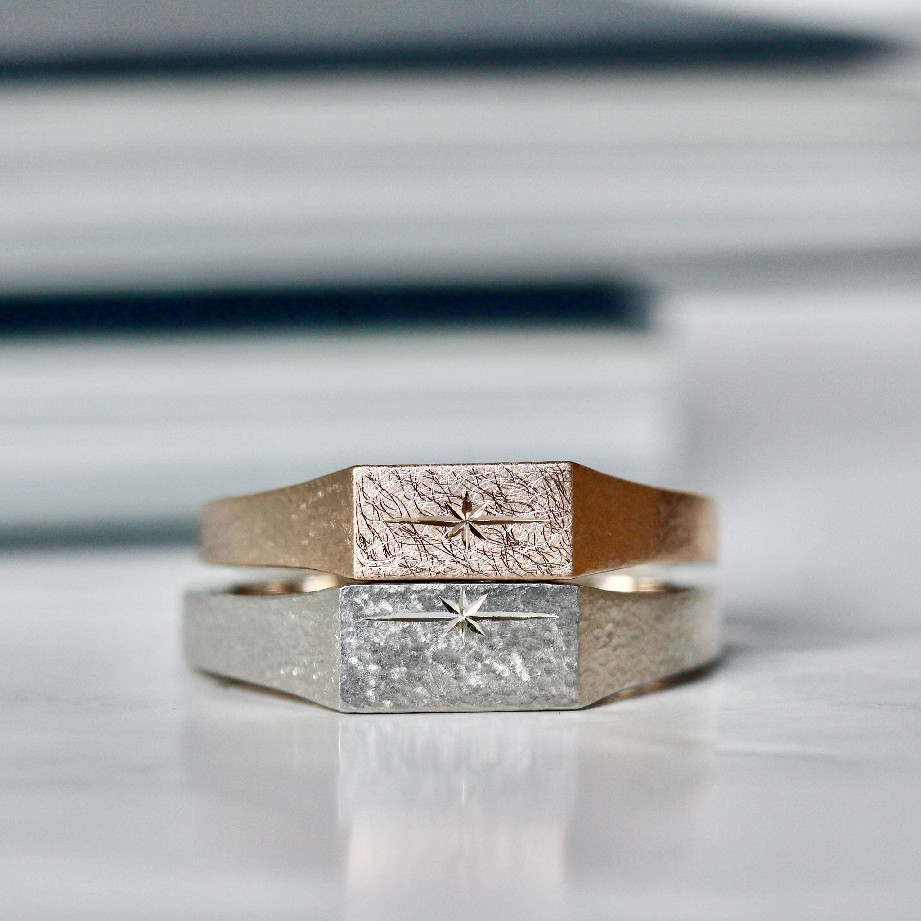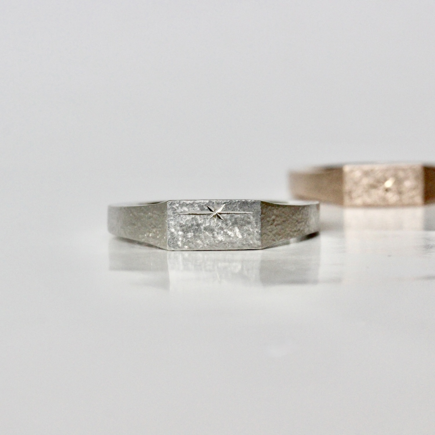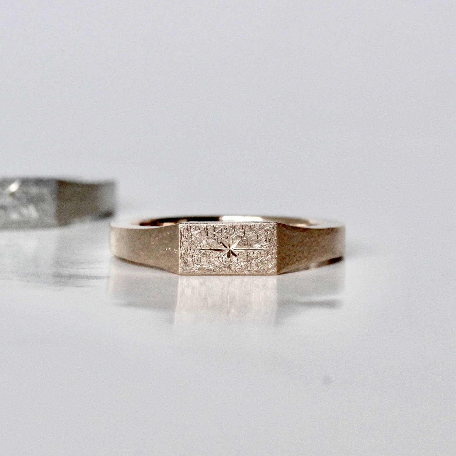 落ち着いた表面加工の中で輝く星